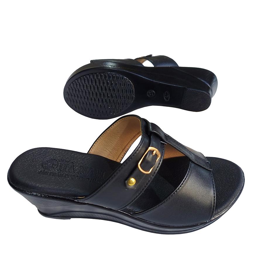 Dép nữ đế xuồng 5cm da bò thật