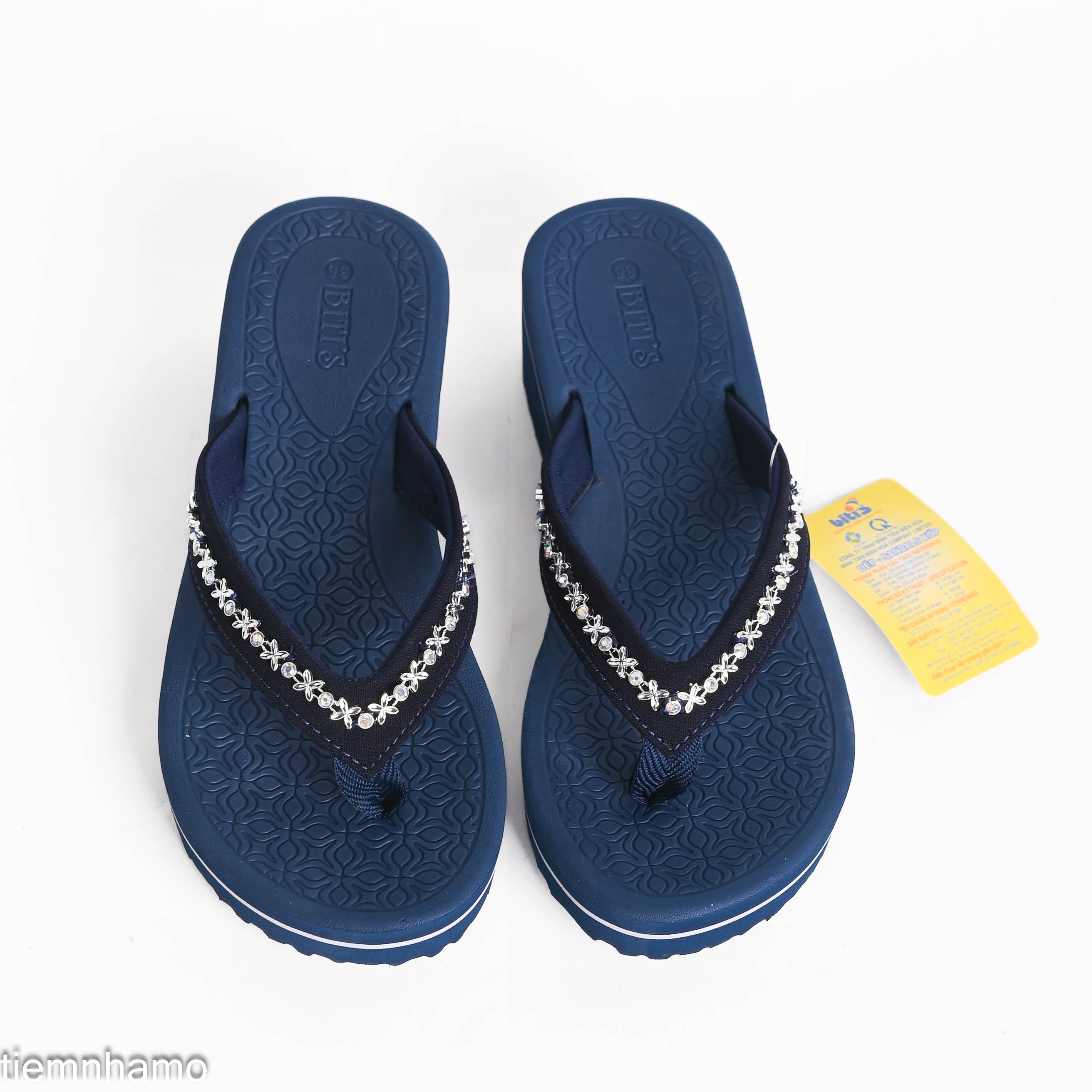 (V) Mô tả sản phẩm: DÉP KẸP NỮ BITI’S – NHẸ ÊM, NỮ TÍNH, DỄ PHỐI Size: 35 - 39 Màu sắc: - Đế xám quai đen đính đá(B) - Đế đen quai đen đính đá(B70) - Đế nâu nhạt quai đen đính đá(73) Mô tả sản phẩm: Dép kẹp nữ Biti’s là lựa chọn hoàn hảo cho nàng yêu thích sự đơn giản nhưng vẫn nổi bật. Thiết kế quai vải bản vừa, điểm nhấn là các hạt đá lấp lánh được đính tỉ mỉ tạo nét thanh lịch, nữ tính. Phần đế EVA nhẹ, êm ái giúp chống trơn trượt, giảm áp lực bàn chân khi di chuyển. Mặt đế có độ bám tốt, thích hợp sử dụng trong nhiều điều kiện thời tiết. Ưu điểm nổi bật: - Thiết kế dịu dàng, phù hợp đi chơi, đi biển, dạo phố - Đính đá thủ công tỉ mỉ, không bong tróc - Đế mềm, nhẹ, êm chân – dễ đi cả ngày dài - Cam kết chính hãng 100% từ thương hiệu Biti’s