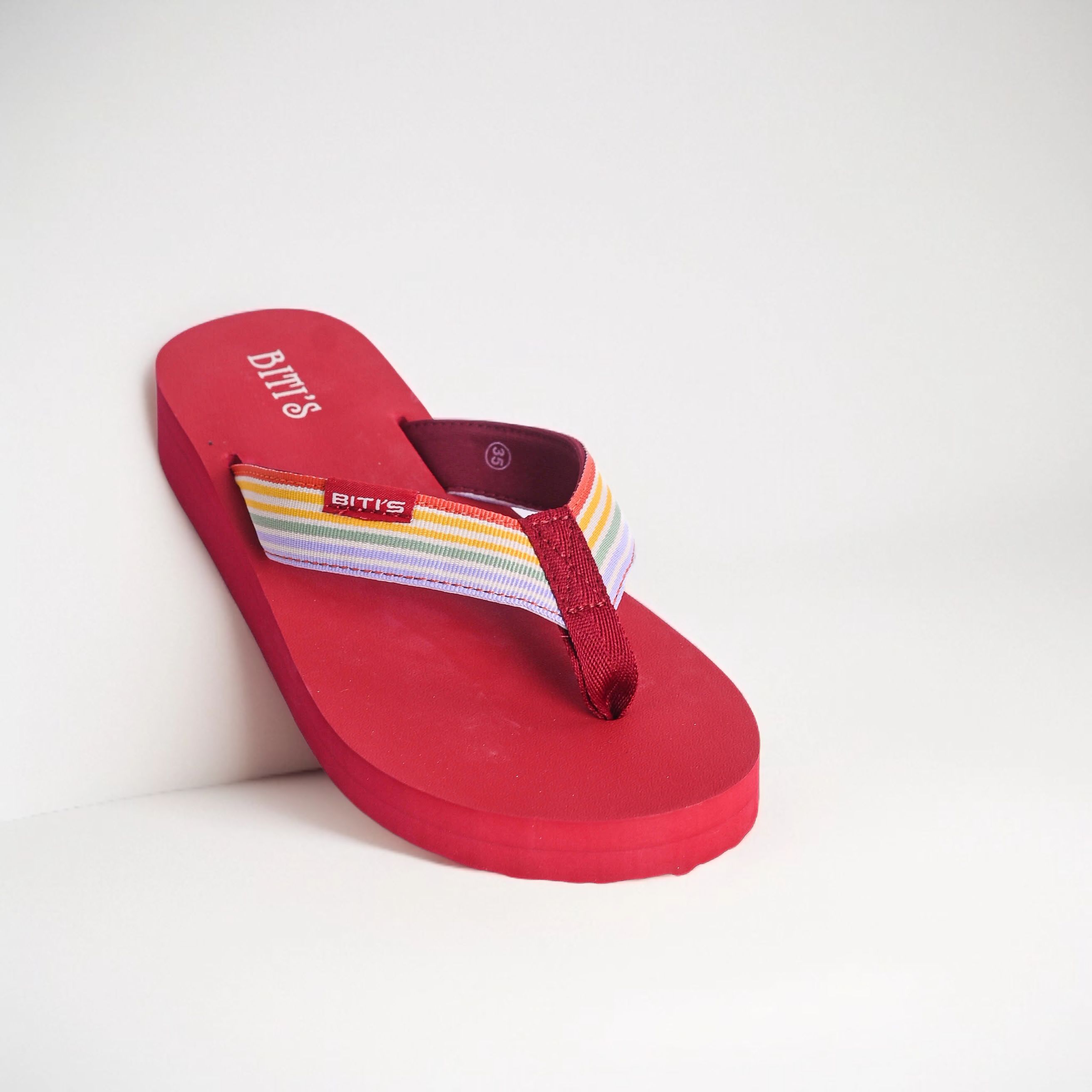 Dép kẹp nữ Biti’s – Thiết kế năng động, trẻ trung - Kiểu dáng: Dép kẹp basic mang phong cách năng động, dễ dàng phối cùng nhiều loại trang phục thường ngày. - Màu sắc: Tông đỏ nổi bật kết hợp quai vải sọc nhiều màu tươi sáng, tạo điểm nhấn cá tính và trẻ trung. - Chất liệu: - Quai vải mềm mại, co giãn nhẹ, không gây đau hay hằn chân. - Đế dép làm từ chất liệu cao su EVA nhẹ, bền, mang lại cảm giác êm ái khi di chuyển. - Đặc điểm nổi bật: - Thiết kế quai ngang chắc chắn, phối màu rainbow tạo cảm giác hiện đại, thời trang. - Đế có độ đàn hồi tốt, chống trơn trượt, phù hợp cho cả đi chơi, đi dạo phố hay đi biển. - Trọng lượng nhẹ, thoải mái sử dụng trong thời gian dài. Sản phẩm phù hợp cho bạn nữ yêu thích sự trẻ trung, năng động nhưng vẫn muốn nổi bật với phong cách riêng.