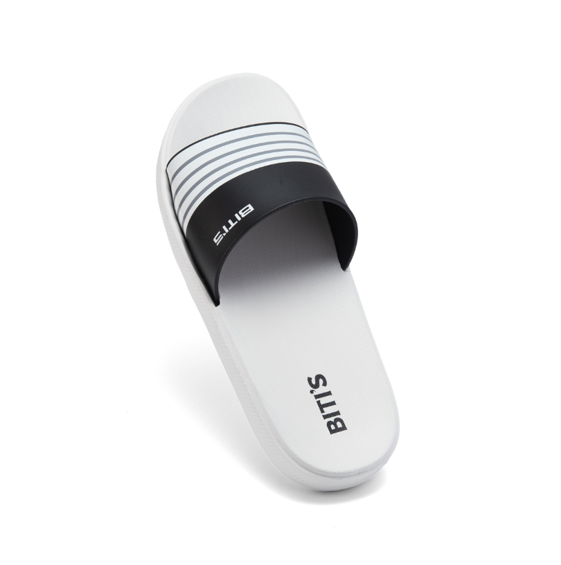 Thiết kế hiện đại: Quai ngang bản lớn phối màu đen – trắng với các sọc ngang xám thời trang, tạo điểm nhấn mạnh mẽ, dễ phối cùng nhiều trang phục thường ngày.