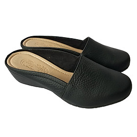 Giày Sục Nữ Giày Đế Xuồng Da Bò Thật Cực Mềm Gót Cao 5cm Evelynv 5P1816 (Đen)
