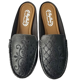 Giày Sục Nữ Giày Cao Gót 3Cm Da Bò Thật Siêu Mềm Cao Cấp Evelynv 3P2916 (Đen)