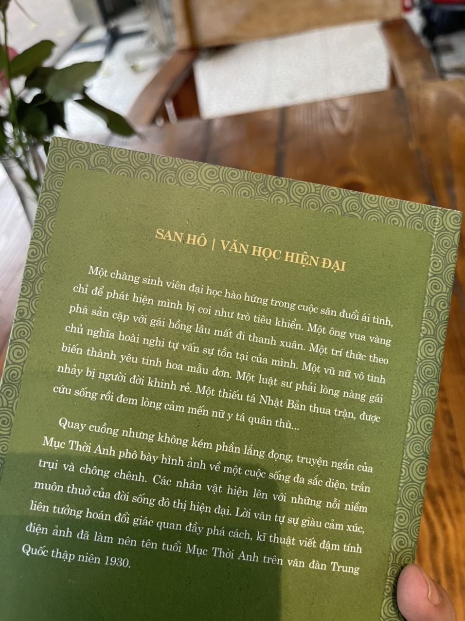 Quay cuổng nhưng không kém phẩn lắng đọng, truyên ngắn của Mục Thời Anh phô bày hình ảnh vể một cuộc sống đa sắc diện, trẩn trụi và chông chênh. Các nhân vật của nhà vǎn họ Mục hiện lên với những nỗi niểm muôn thủa của đời sống đô thị hiện đại. Lời văn tự sự giàu cảm xúc, liên tưởng hoán đổi giác quan đẩy phá cách, kĩ thuật viết đậm tính điện ảnh đã làm nên tên tuổi của Mục Thời Anh trên vǎn đàn Trung Quốc thập niên 1930.