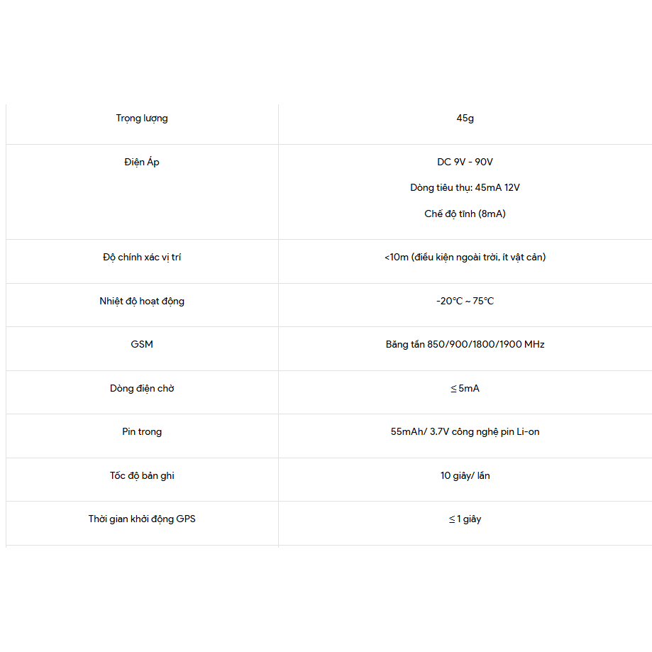 Độ chính xác vị trí <10m (điều kiện ngoài trời, ít vật cản)