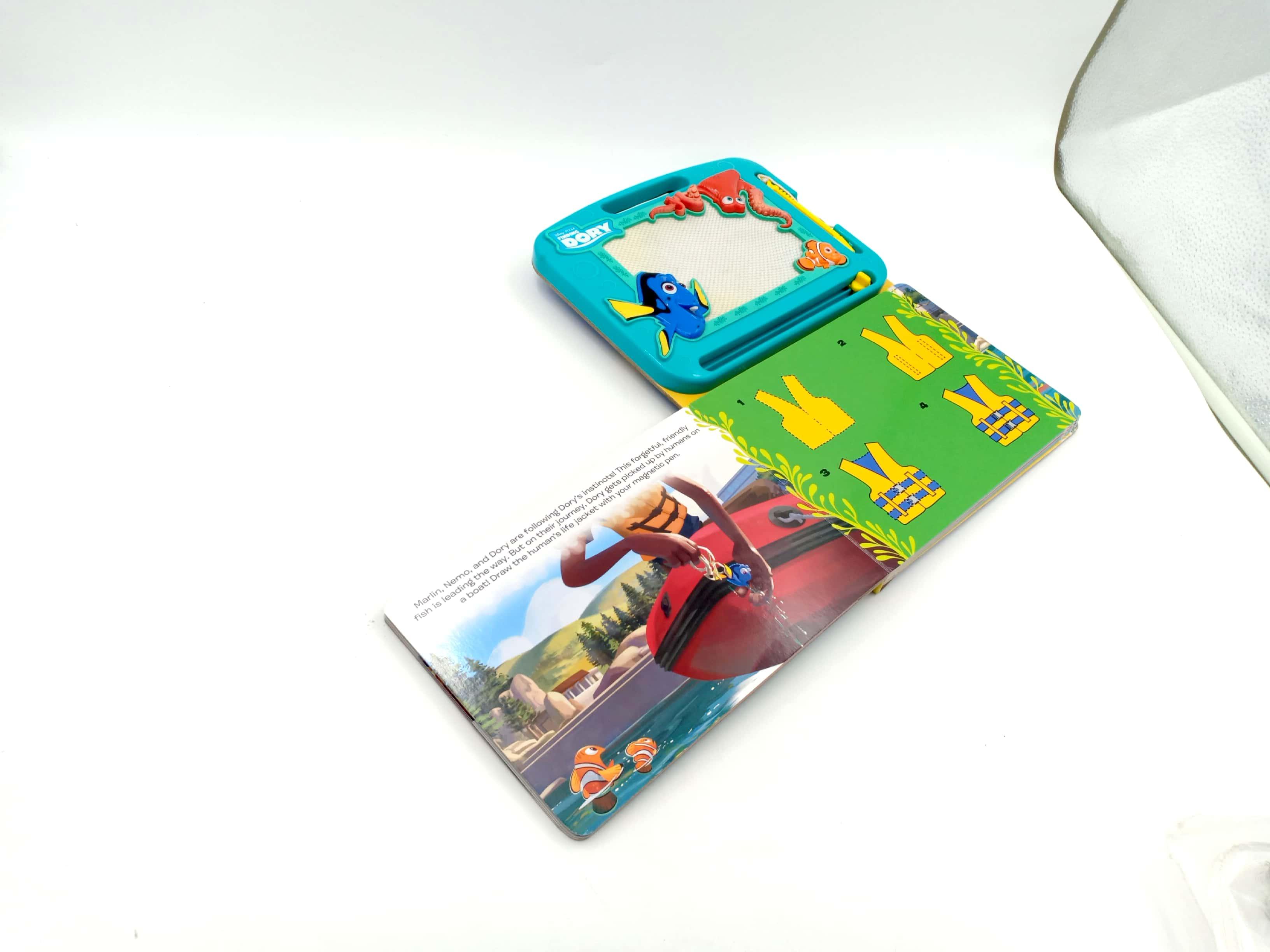 Mua tại TiktokDraw along in this epic underwater adventure as forgetful Dory tries to find her way back home with the help of her friends! The magnetic drawing pad is erasable, so you can enjoy the book again and again. 3 years and up.