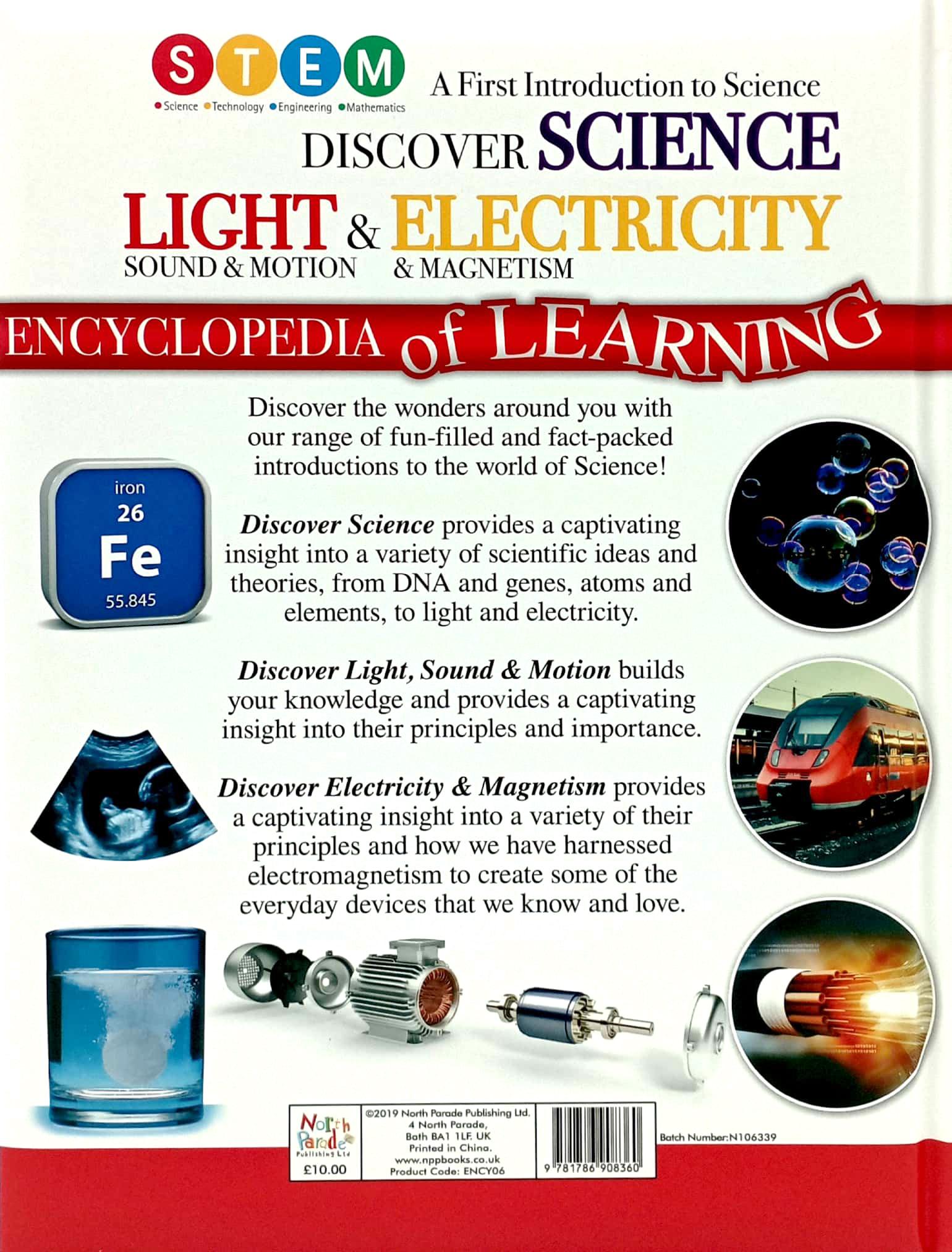 Discover the wonders around you with our range of fun-filled and fact-packed introductions to the world of Science. Discover Science provides a captivating insight into a variety of scientific ideas and theories, from DNA and genes, atoms and elements, to light and electricity. Discover Light Sound & Motion builds your knowledge and provides a captivating insight into their principles and importance. Discover Electricity & Magnetism provides a captivating insight into a variety of their principles and how we have harnessed electromagnetism to create some of the everyday devices that we know and love.