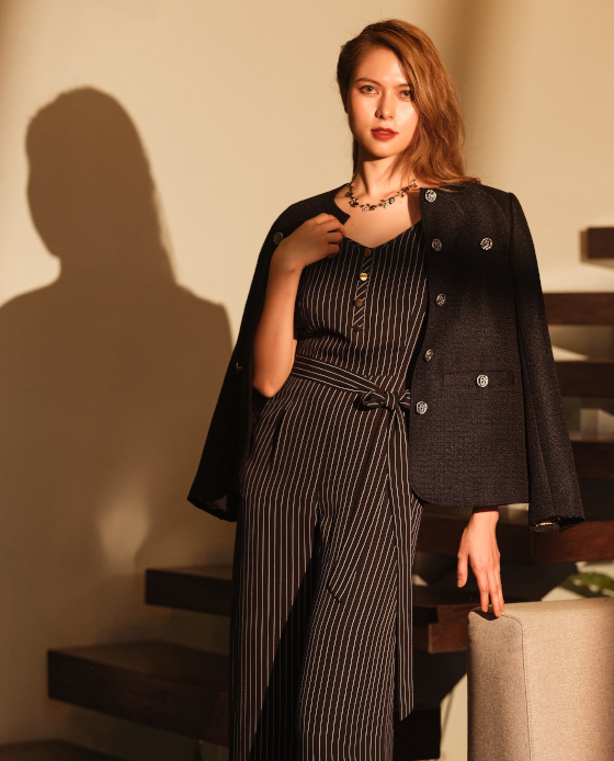 Jumpsuits với thiết kế dáng dài, ống rộng xẻ hai bên, ôm ngực, ôm eo khéo léo tôn vinh đường cong cơ thể, đặc biệt với những Quý cô có vòng mông tròn đầy. Thiết kế hai dây đề cao nét trẻ trung, khoẻ khoắn của bờ vai, và cũng dễ dàng phối với áo khoác, khăn choàng khi bạn cần thêm gia vị trang nhã, kín đáo cho bộ trang phục.