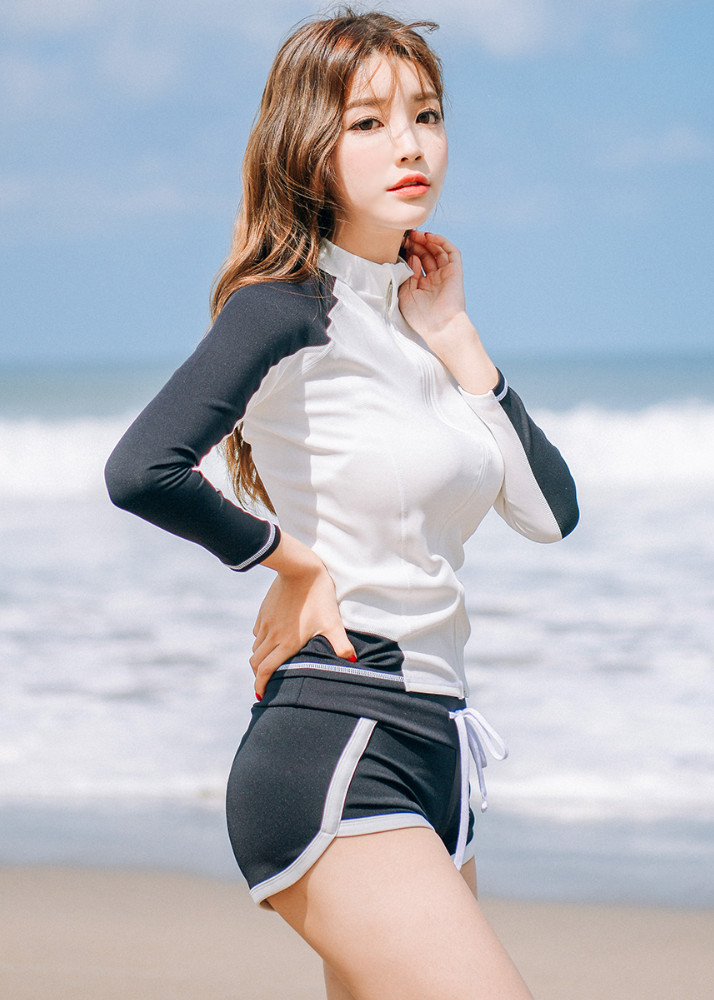 - Thiết kế 2 mảnh khỏe khoắn, đồ bơi nữ có sẵn mút ngực. Tay dài che nắng, bảo vệ tia UV cho làn da tay của bạn.