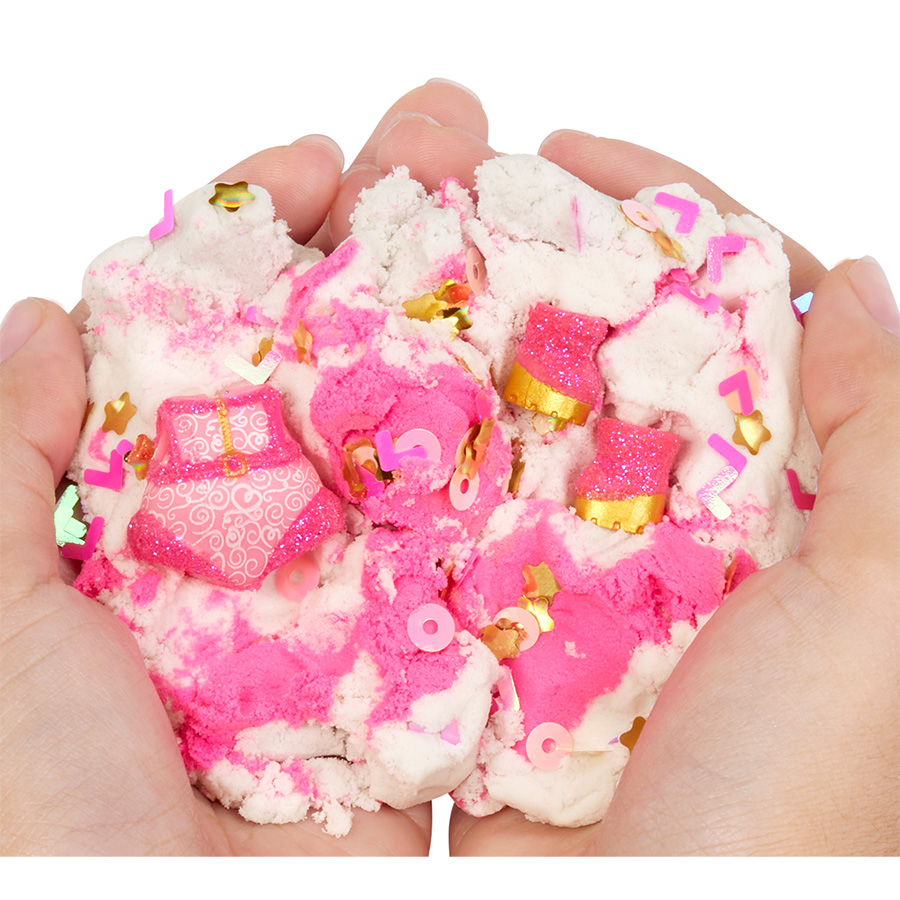 Bạn có thể bẻ và bóp để mở Squish Sand! Đặt búp bê của bạn vào khuôn cùng với cát để tạo kiểu tóc Squish Sand hoàn toàn mới có thể tồn tại trong 3-4 phút. Lấy quả bóng LOL Bất ngờ của bạn nén cát lại để tạo ra các họa tiết vui nhộn. Bạn có thể chạm vào hoặc dùng lược để tạo các hình dạng lượn sóng.