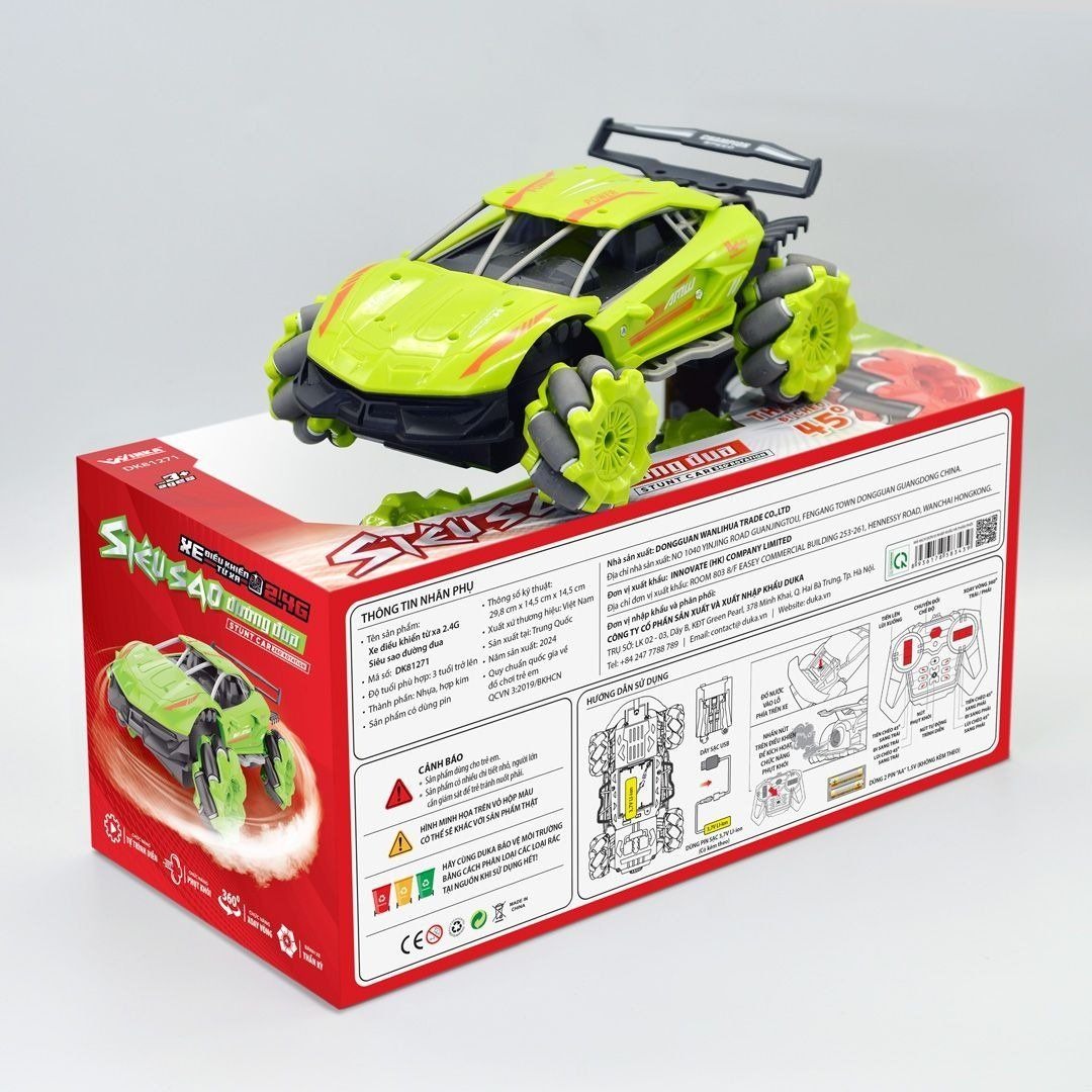 XE ĐIỀU KHIỂN TỪ XA 2.4G - KIỆN TƯỚNG NHÀO LỘN Đồ chơi xe điều khiển được thiết kế với mô hình xe đua, chất liệu hợp kim độ bền cao, lốp cao su to và