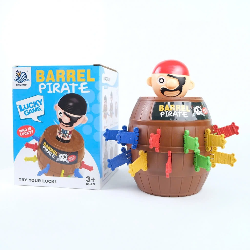 Mô tả sản phẩm: Trò chơi hải tặc với thiết kế thùng gỗ và nhân vật hải tặc ngộ nghĩnh. Luật chơi thú vị: lần lượt cắm 24 que cắm vào các khe,