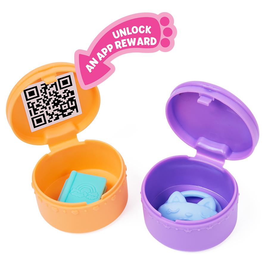 Bên trong các hộp giao hàng, các bé có thể tìm thấy các mã QR, quét các mã đó để mở khóa phần thưởng độc quyền trong ứng dụng miễn phí của Gabby's Dollhouse (có sẵn trên iOS và Android).