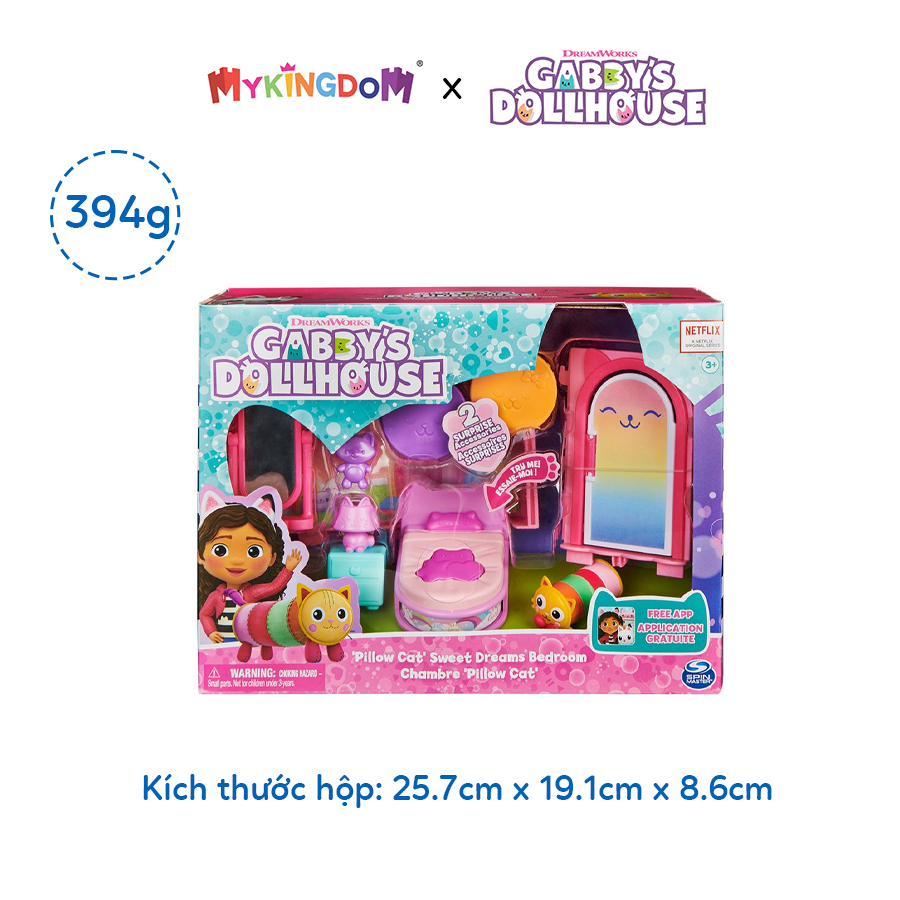 Căn phòng ngủ Pillow Cat còn có thể gắn vào ngôi nhà hoàn hảo của Gabby để bé yêu có thể trải nghiệm thêm thú vị.