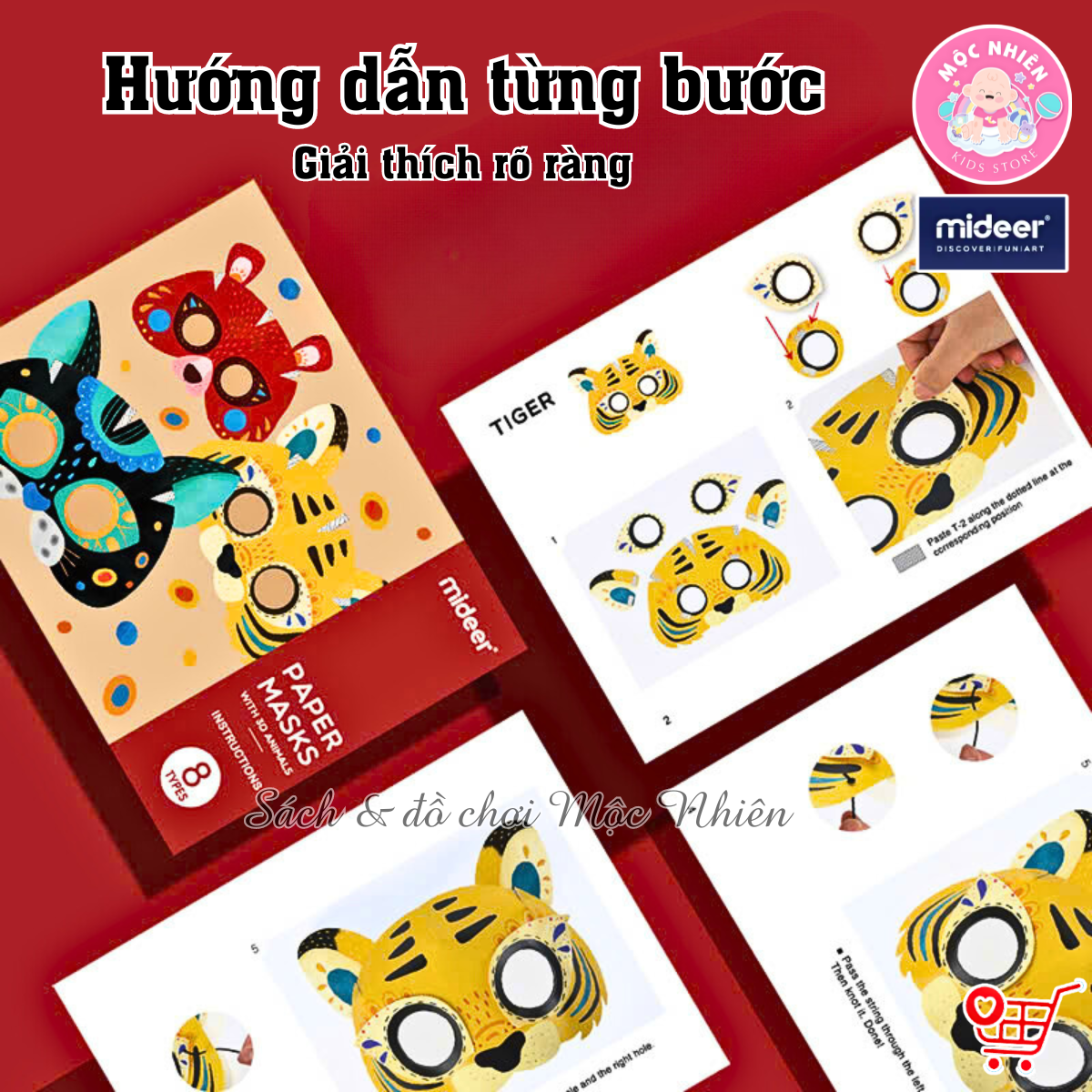 - 1 tấm sticker gồm các keo dính Đồ Chơi Stem Mặt Nạ Giấy Hình Động Vật 3D Animal Paper Masks Mideer