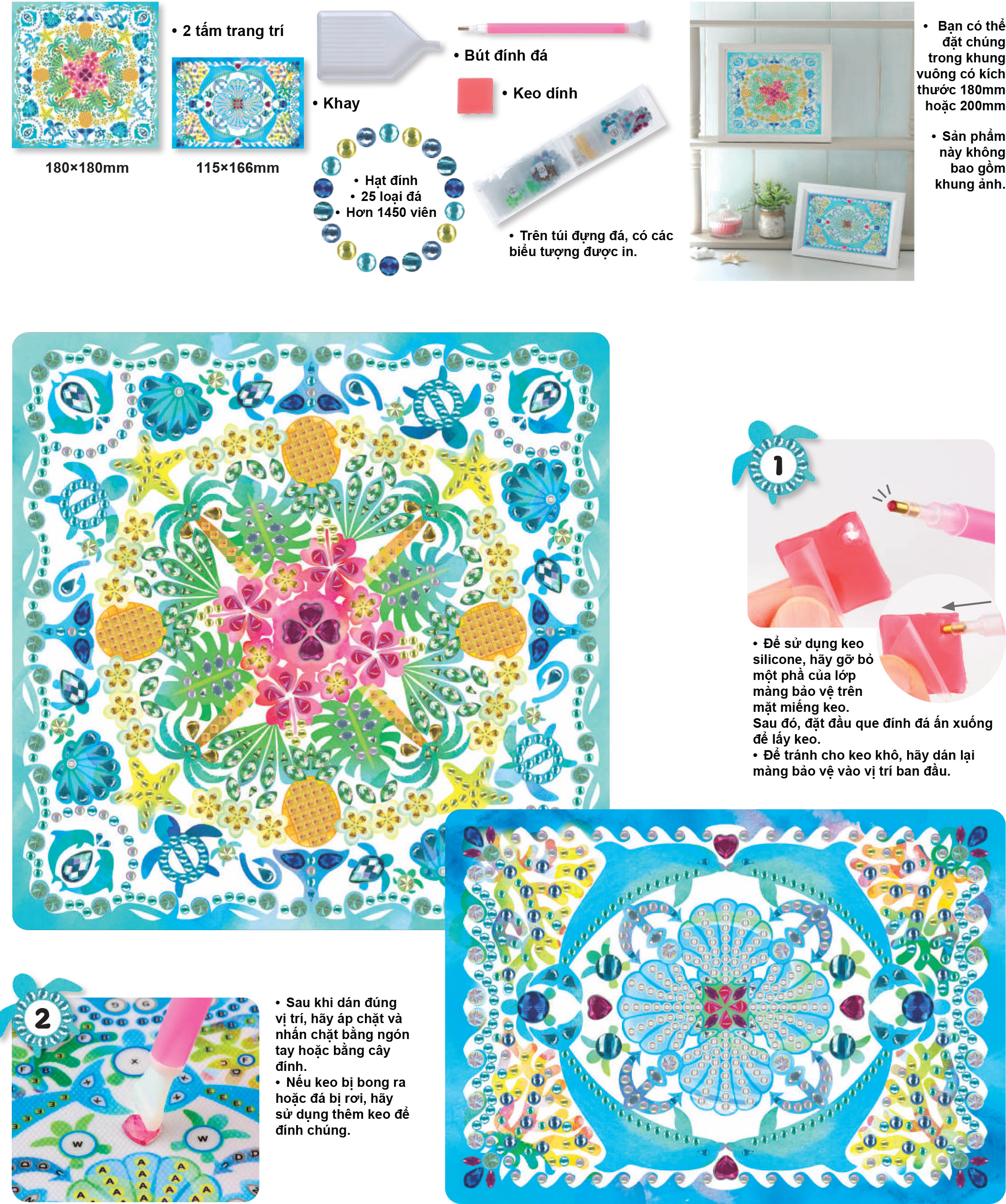 Chất liệu: Nhựa, vải, hạt màu Kích thước gói: 170 x 15 x 270 Độ tuổi: 15 tuổi trở lên Mandala là biểu tượng của vũ trụ vô tận. Nó mang lại sự êm dịu