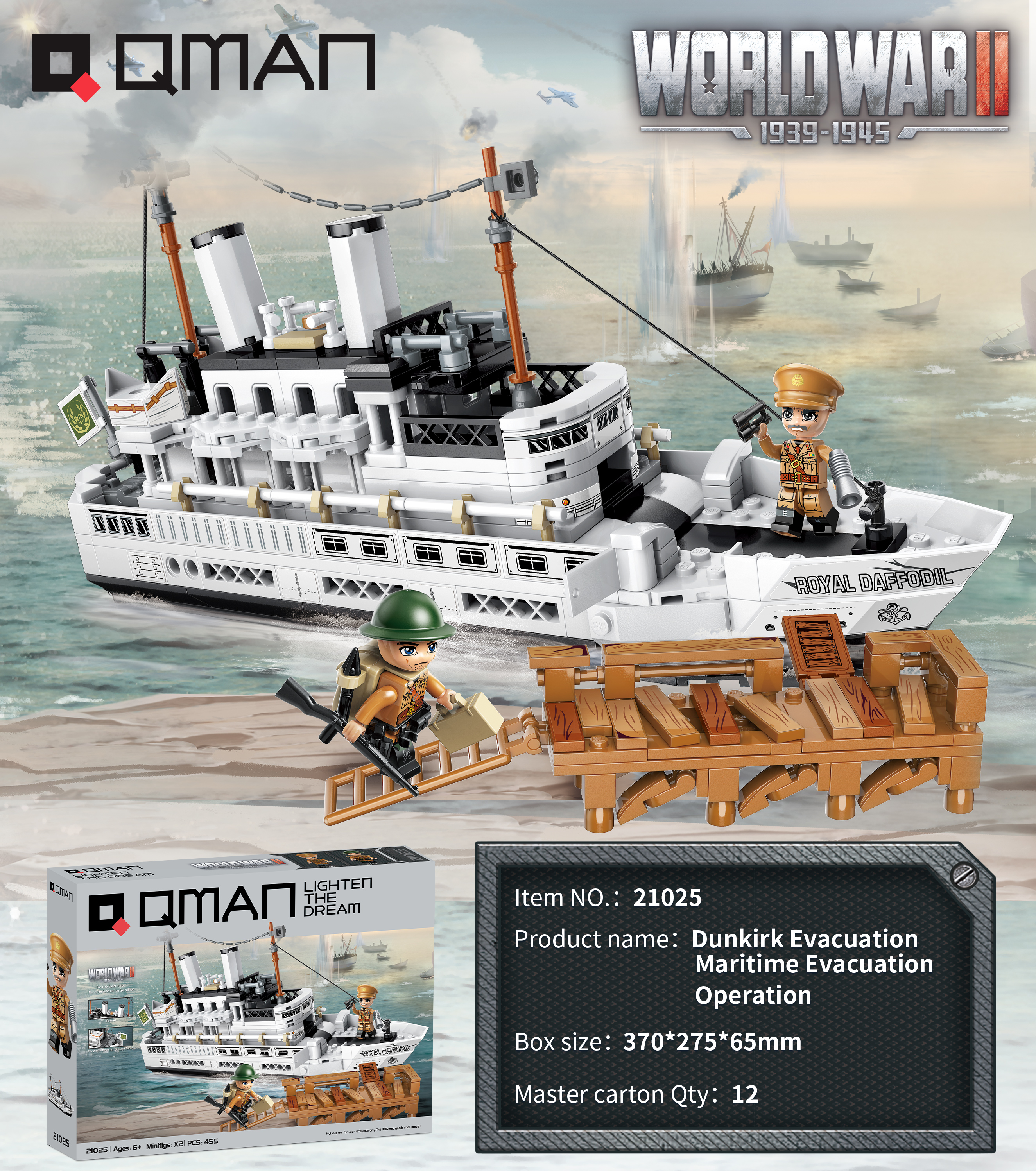 Bộ xếp hình, lắp ráp Qman 21025 – Sơ tán hàng hải là sản phẩm mới chủ đề quân sự trong Thế Chiến II, bộ sưu tập rất hấp dẫn của QMAN.