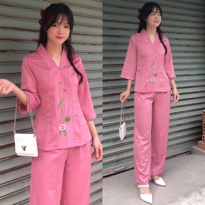 Quần áo phật tử, đồ lam đi chùa mẫu bà lai gấm #quanaophattu