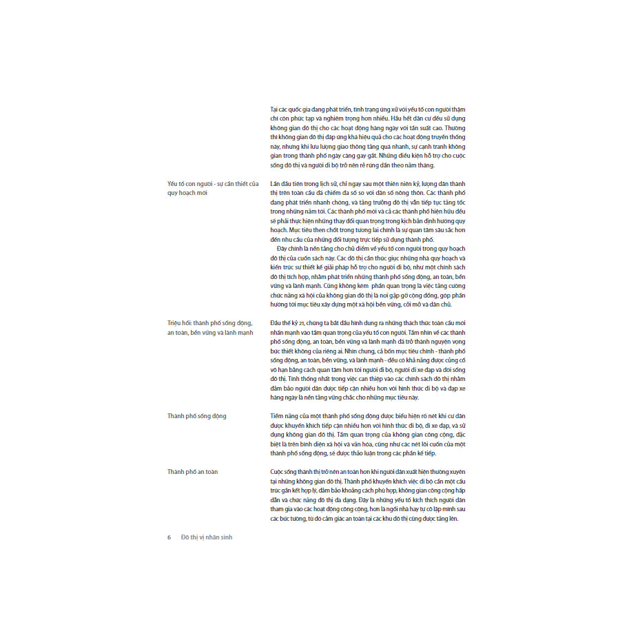 Thành phố là nơi con ngươi gặp gỡ để trao đổi ý tưởng, giao dịch, hay chỉ đơn giản là thư giãn và hưởng thụ. Không gian công cộng đô thị - phố phường, quảng trường và công viên - là bối cảnh và chất liệu cho các hoạt động này. Jan Gehl, bậc thầy thiết kế không gian công cộng, hiểu biết sâu sắc về cách chúng ta sử dụng không gian chức năng này và cung cấp các công cụ cần để cải thiện thiết kế tại những khu vực công cộng, hướng tới đích đến là chất lượng cuộc sống.