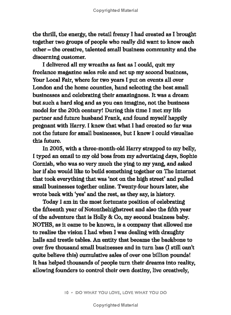 Holly Tucker – co-founder of Not on the High Street, and creator of Holly & Co – is on a mission to change business forever. Having overseen 5,000 entrepreneurs and identified the keys to their success, in Do What You Love, Love What You Do, she now wants to help anyone build a business doing what they love, leading to a happier and more fulfilled life.