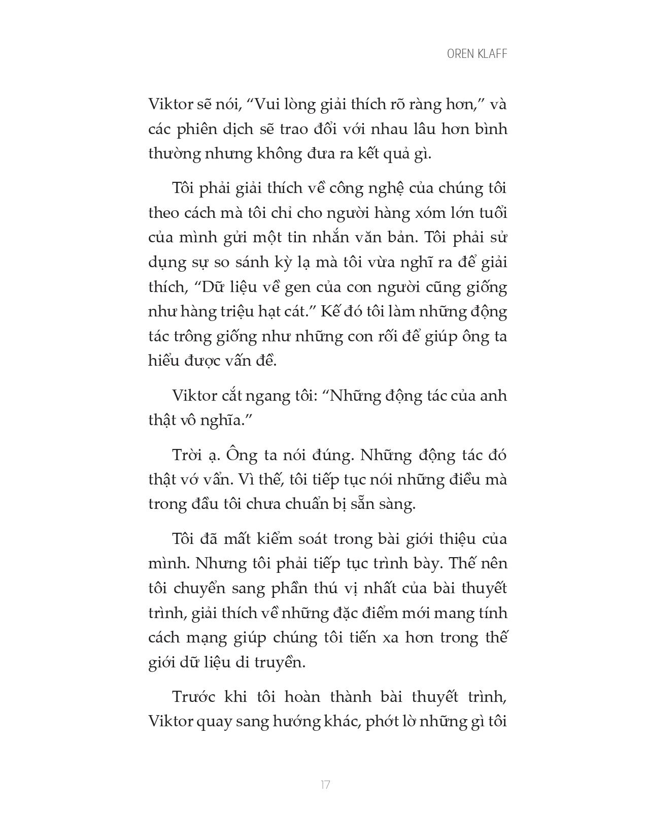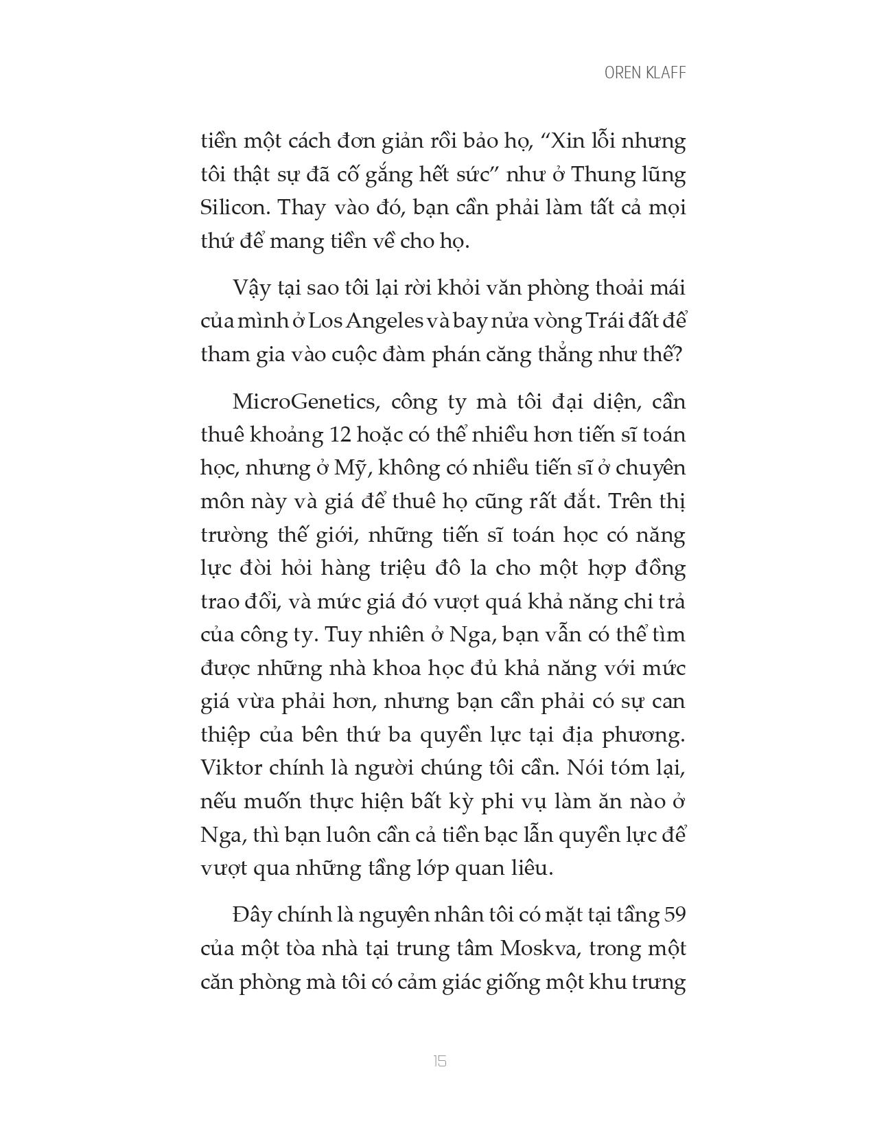 Oren Klaff là một trong những chuyên gia hàng đầu thế giới về bán hàng, huy động vốn và đàm phán. Cuốn sách đầu tiên của ông, Pitch Anything, được in hơn 1.000.000 bản trên toàn thế giới. Ông viết cho Harvard Business Review, Inc., Advertising Age, Entrepreneur và xuất hiện trên hàng trăm tạp chí, podcast và blog. Ông cũng là đối tác đầu tư trong quỹ đầu tư cổ phần tư nhân trị giá 200 triệu đô la.