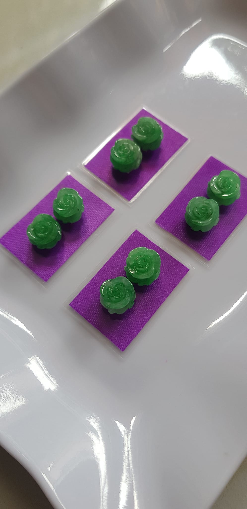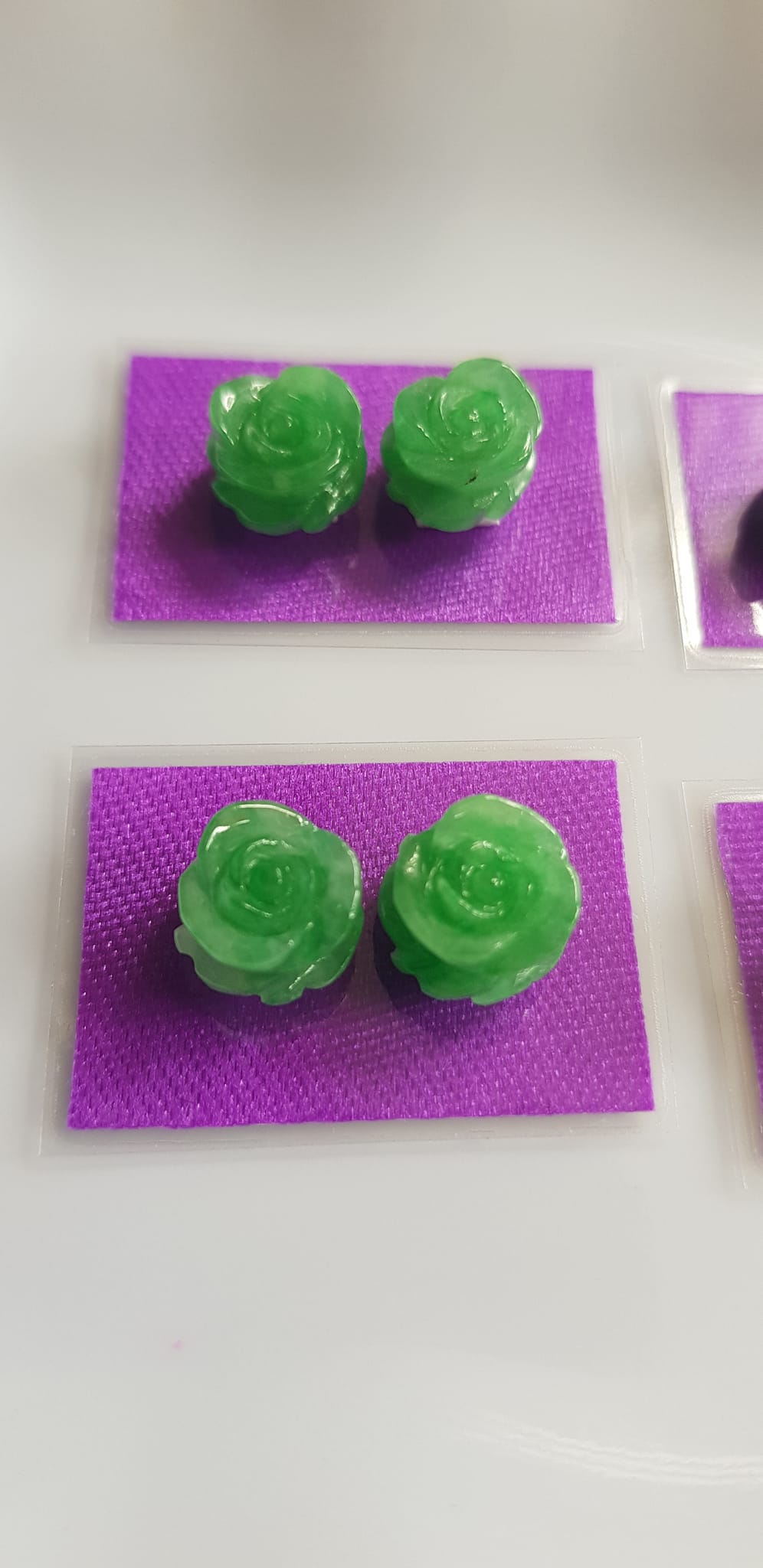 Đôi bông tai mới bông hồng nổi cao sịn đẹp xanh Ngọc tươi size đk 9,5mm x Cao 5mm Chất liệu đá ngọc cẩm thạch tự nhiên xanh ngọc tươi đều sịn bóng mượt đẹp