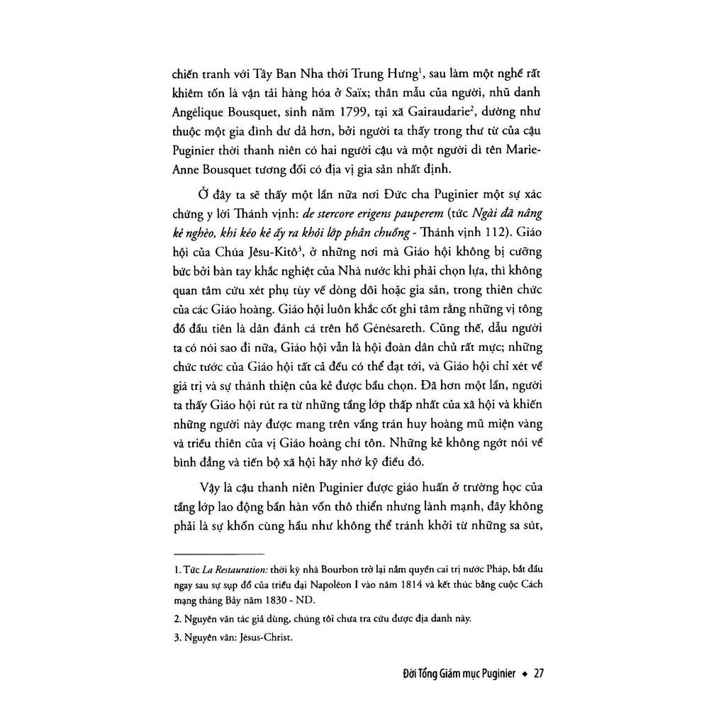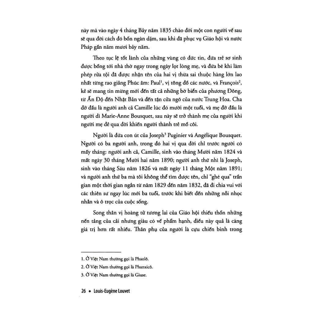 Đời Tổng Giám mục Puginier được tác giả Louis-Eugène Louvet thực hiện và hoàn thành hai năm (1894) sau khi Đức cha Puginier qua đời, là một trong những tác phẩm biên niên thuật lại tương đối đầy đủ và chi tiết về ba khía cạnh chính của cuộc đời một trong những nhân vật có những can hệ quan trọng mà vô cùng ngầm ẩn đối với xứ Bắc kỳ cuối thế kỷ XIX đầu thế kỷ XX: Đức cha Puginier, giám mục xứ Mauricastre, cố tư tế tông tòa miền Tây Bắc kỳ.