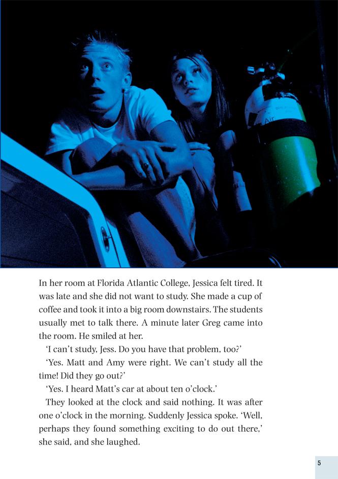 Amy and Matt are bored. They don't want to study for their exams they want to have a good time. So they drive to the marina at West Palm Beach, and Matt jumps onto one of the boats. 'We can go anywhere!' he jokes. But when the owners of the boat come back and find them, Amy and Matt are in deep trouble. Matt is a good swimmer and enjoys scuba-diving, but now he must dive for their lives.