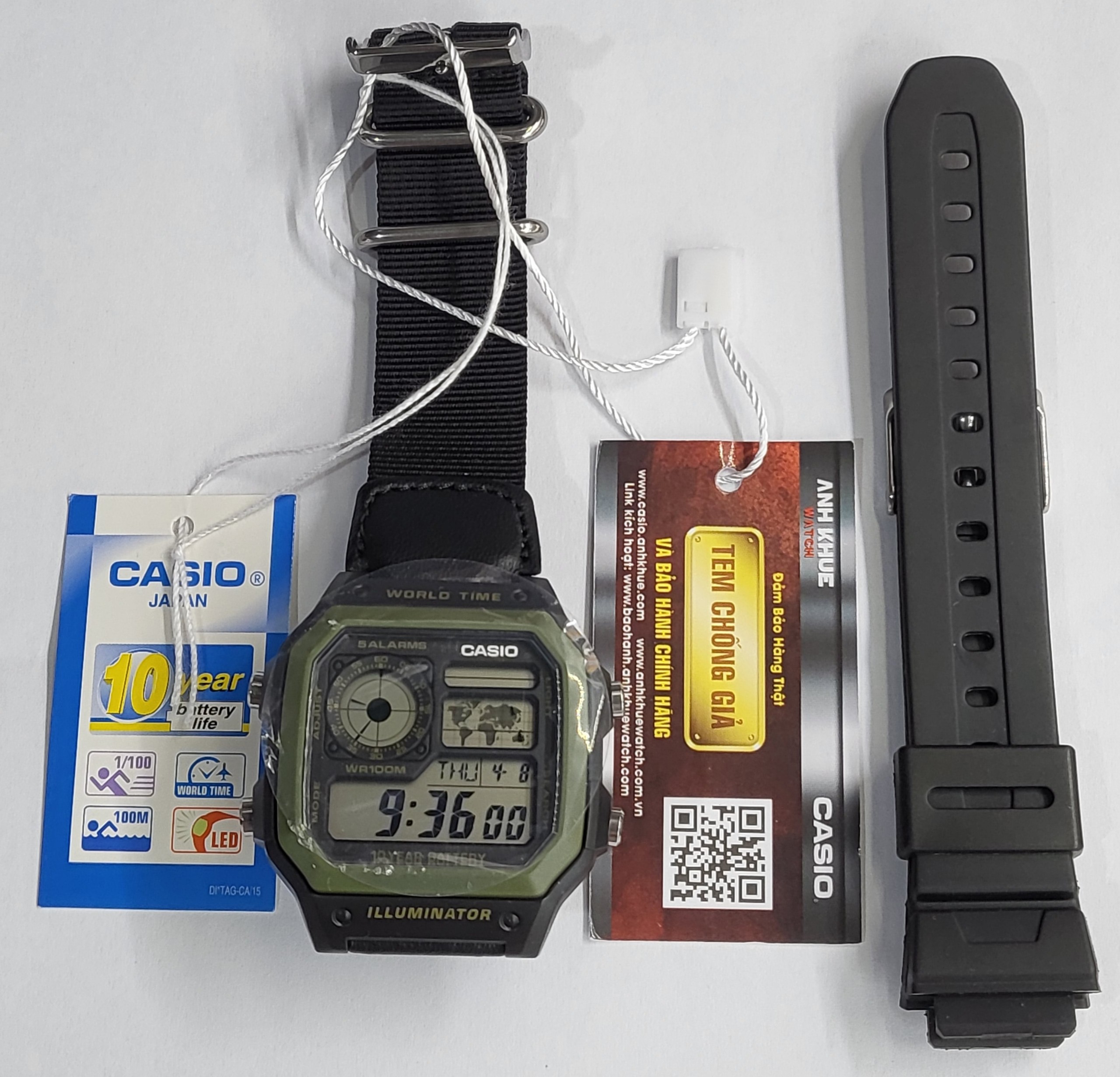 Đồng Hồ Casio AE-1200WHB-1BVDF Nam Quartz Đồng hồ nam Casio AE-1200WHB-1BVDF có thiết kế mạnh mẽ và cá tính. Vỏ máy có tông màu xanh lục chủ đạo, kết hợp với viền bên ngoài màu