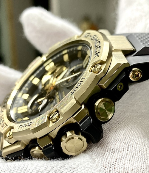Chiêm ngưỡng phong cách độc lạ của mẫu đồng hồ G-STEEL với sự kết hợp các bộ phận kim loại và nhựa trong thiết kế tông màu đen và vàng vốn luôn được ưa chuộng.