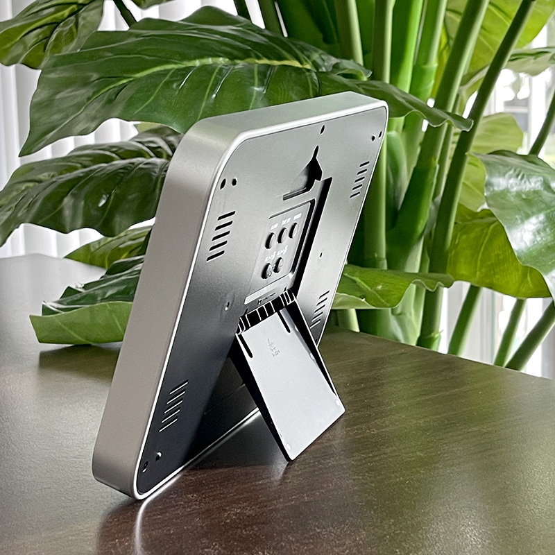 Mua tại TiktokĐồng hồ điện tử Rhythm LCT084NR19, sử dụng 3 pin AA. Vỏ nhựa cao cấp sơn nhũ bạc, kích thước 22.4 x 15.0 x 1,8cm nặng 320g. Màn hình điện tử hiển thị lịch ngày tháng thứ bằng 8 thứ tiếng. Hiển thị nhiệt độ và 4 múi giờ báo thức. Với chân đế có thể đặt bàn hoặc treo tường.