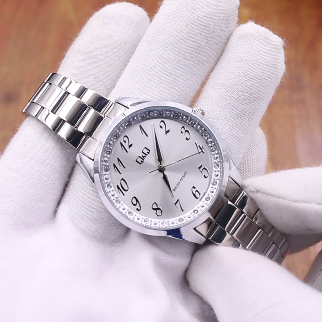 Mua tại TiktokĐồng hồ QC07J204Y với thiết kế mặt đính đá xung quanh viền trong mặt đồng hồ làm nổi bật sự sang trọng và thời trang của sản phẩm
