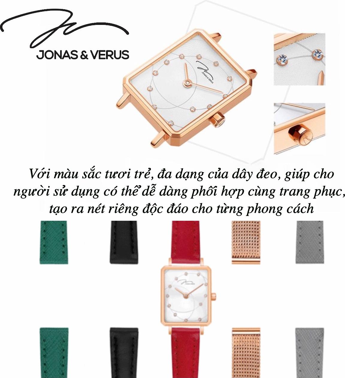✨Đồng hồ đeo tay Nữ hiệu JONAS & VERUS X02060-Q3.PPWLR, Máy Pin (Quartz), Kính sapphire chống trầy xước, Dây Da Italy
