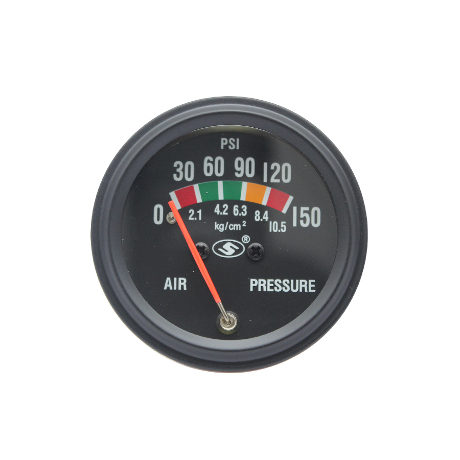 Đồng hồ đo áp suất máy nén khí SUSUKI IG52-AP-25-150 150psi được làm bằng hợp kim tiêu chuẩn, các thông số đo rõ ràng, khả năng đo cả đơn vị kg/cm2 lẫn đơn vị PSI thuận lợi cho việc sử dụng trên hệ thống xe.