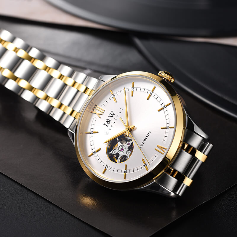 MẪU ĐỒNG HỒ CƠ LỘ MÁY SIÊU QUYẾN RŨ IW CARNIVAL IW570G-1 Đồng hồ lộ cơ Skeleton hay còn được biết đến là đồng hồ "Open Heart" luôn tỏa ra sức hút lớn ngay từ lần đầu nhìn thấy khiến các tín đồ đam mê đồng hồ dù nam hay nữ đều khó lòng từ chối. Với vẻ đẹp phô diễn những cấu tạo cầu kỳ như khung xương và cầu đĩa được chạm khắc tinh xảo thông qua phần khoét rỗng tại mặt số, các cỗ máy Skeleton được coi là một trong những tuyệt tác với kiểu dáng đẳng cấp bậc nhất thế giới. Chắc chắn rằng những chiếc đồng hồ cơ lộ máy của IW Carnival sẽ giúp người đeo dễ dàng nhìn ngắm từng chuyển động thời gian được thể hiện một cách nhịp nhàng nhất. Hãy cùng Thành Hưng Wacth khám phá mẫu đồng hồ lộ cơ IW CARNIVAL IW570G-1 mới nhất đến từ thương hiệu IW Carnival nhé!