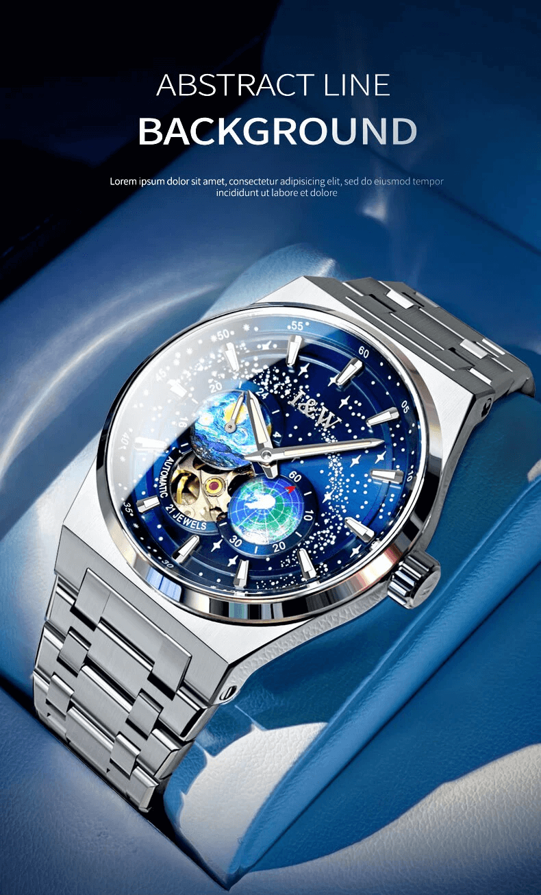 Sự kết hợp hoàn hảo đến khó tin của mặt dial vạn vì sao lấp lánh như bầu trời trong đêm cùng với sự sáng tạo kim giây mô phỏng vòng quay của Trái Đất không ngừng nghỉ (đặc sắc hơn với dạ quang siêu sáng ban đêm)