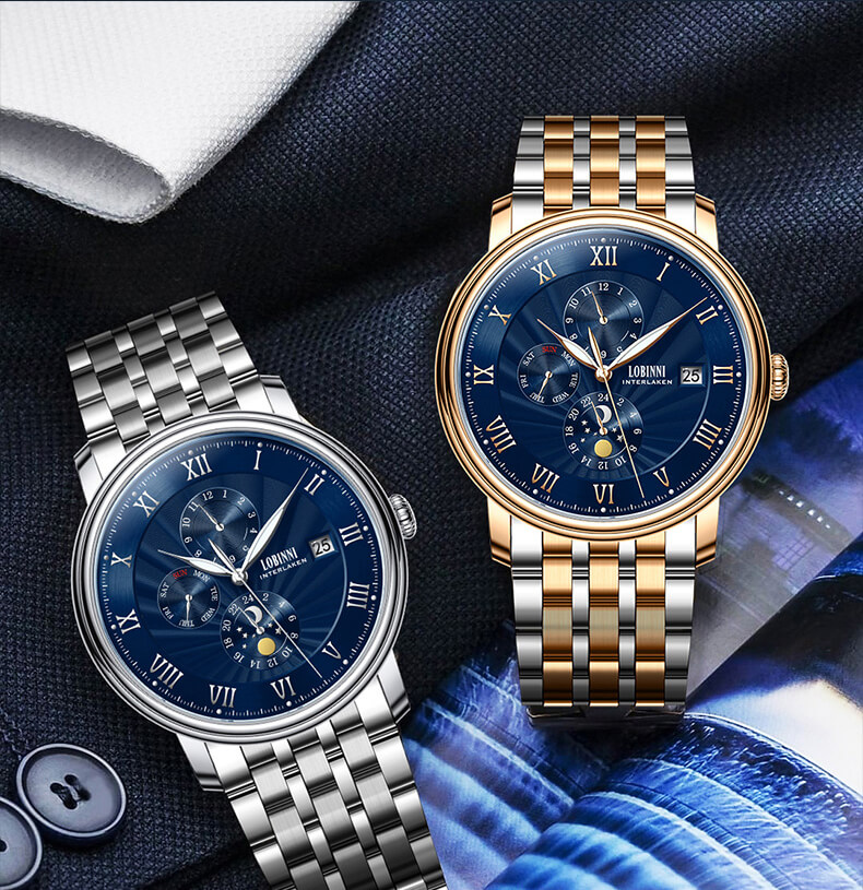 Đồng hồ nam chính hãng LOBINNI Thụy Sỹ Thiết kế sang trọng, đẳng cấp cho quý ông Thời gian trữ cót lâu lên đến 40h Chống nước 5ATM, Kính sapphire Toàn bộ máy được làm
