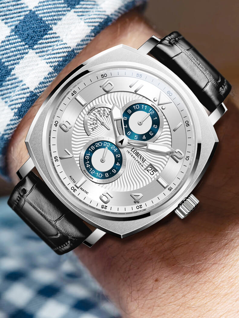 Đồng hồ nam chính hãng LOBINNI Thụy Sỹ Thiết kế sang trọng, đẳng cấp cho quý ông Thời gian trữ cót lâu lên đến 40h Chống nước 5ATM, Kính sapphire Toàn bộ máy được làm