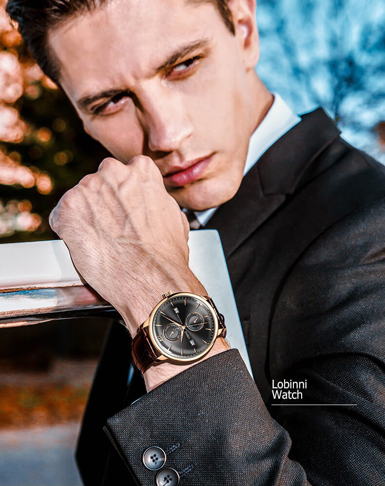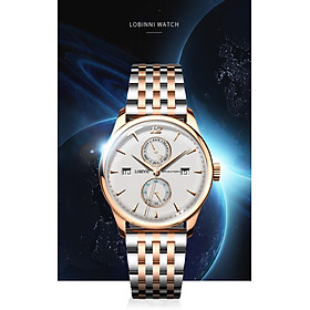 Đồng hồ nam chính hãng LOBINNI Thụy Sỹ Thiết kế sang trọng, đẳng cấp cho quý ông Thời gian trữ cót lâu lên đến 40h Chống nước 5ATM, Kính sapphire Toàn bộ máy được làm