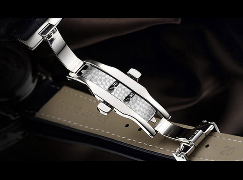 Đặc điểm kỹ thuật - - Vật liệu vỏ / gờ: Mạ ion - Chốt gập 3 chỉ với một lần bấm - Dây đeo bằng thép không gỉ - Mặt kính khoáng - Khả