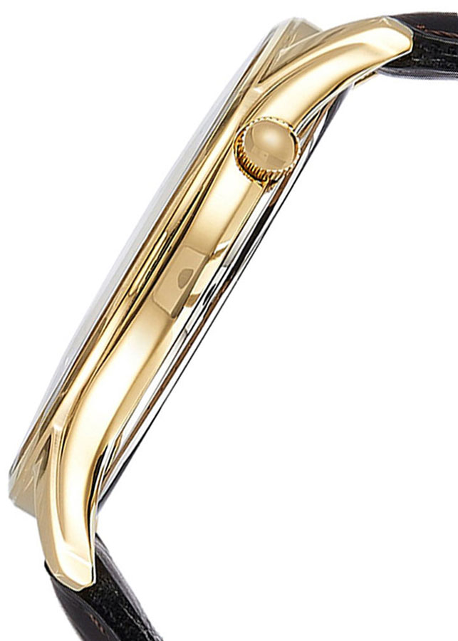 - Vật liệu vỏ / gờ: Sắc vàng kim - Dây đeo bằng da - Mặt kính khoáng - Chống nước - Giờ hiện hành thông thường Đồng hồ kim: 3 kim (giờ, phút, giây)