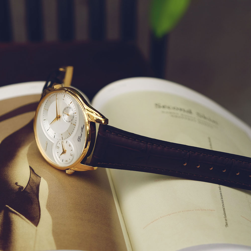 • Viền đồng hồ được phủ vàng cổ điển bằng công nghệ PVD, không bong tróc.