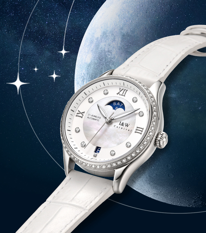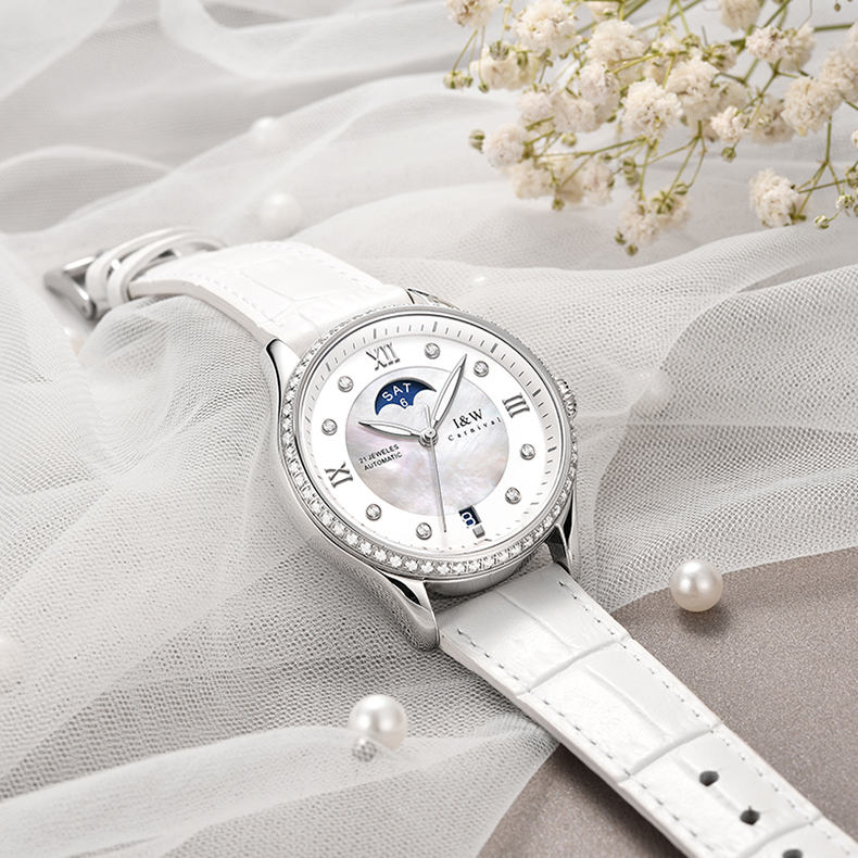 Với thiết kế đẹp, nữ tính, nhưng cũng không kém phần trang trọng, sành điệu IW582G phù hợp với chị em cổ tay vừa, thích nét cổ điển, thanh lịch mà vẫn trẻ trung Mặt đồng hồ tròn truyền thống , niềng được gắn đá mạ bạc sang trọng bo tròn quyến rũ .Quanh nền trắng mặt số , kim chỉ được làm mỏng phủ phản quang nổi bật Size mặt 35mm , mỏng chỉ 12mm Máy Automatic Nhật bản bền bỉ Chống nước 3ATM. Thân vỏ thép không gỉ Mặt kính sapphire