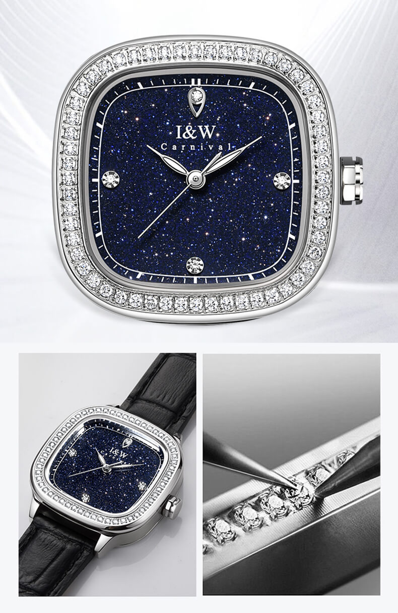 Đồng hồ nữ IW632L được trang trí với những chi tiết tỉ mỉ, từ những viên đá được cắt tinh xảo đến những đường viền trang trí bên ngoài, tất cả đều tạo nên một bức tranh tuyệt đẹp trên mặt đồng hồ. Với kiểu dáng đơn giản và màu sắc tối giản, đồng hồ này thích hợp cho các bạn gái sành điệu và muốn tìm kiếm một phụ kiện thời trang để hoàn thiện phong cách của mình.