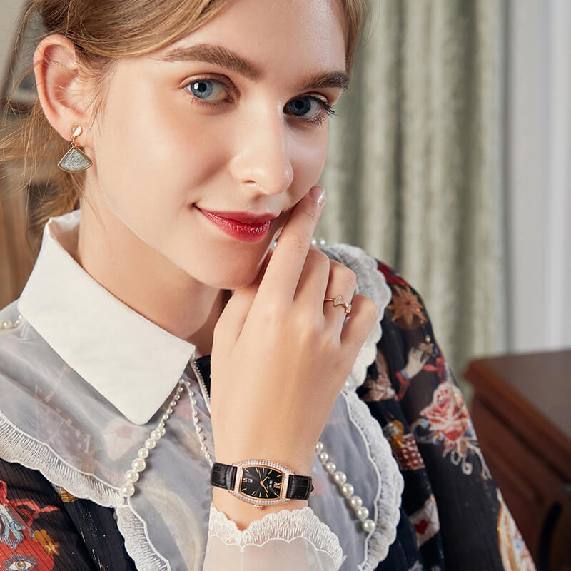 Sắc đen không chỉ phản ánh gu thẩm mỹ nhẹ nhàng mà còn mang đến cảm giác thanh bình và ấm áp, giúp tôn vinh nét đẹp tự nhiên nhất của Nàng,tạo hiệu ứng thị giác nịnh mắt, giúp nàng che khuyết điểm tốt mà dễ dàng mix&match cùng items khác. Với những ngày không biết đeo phụ kiện gì, nàng chỉ cần 1 chiếc đồng hồ xinh mix cùng 1 bộ váy đơn giản cũng đủ giúp nàng nổi bật rồi đó!