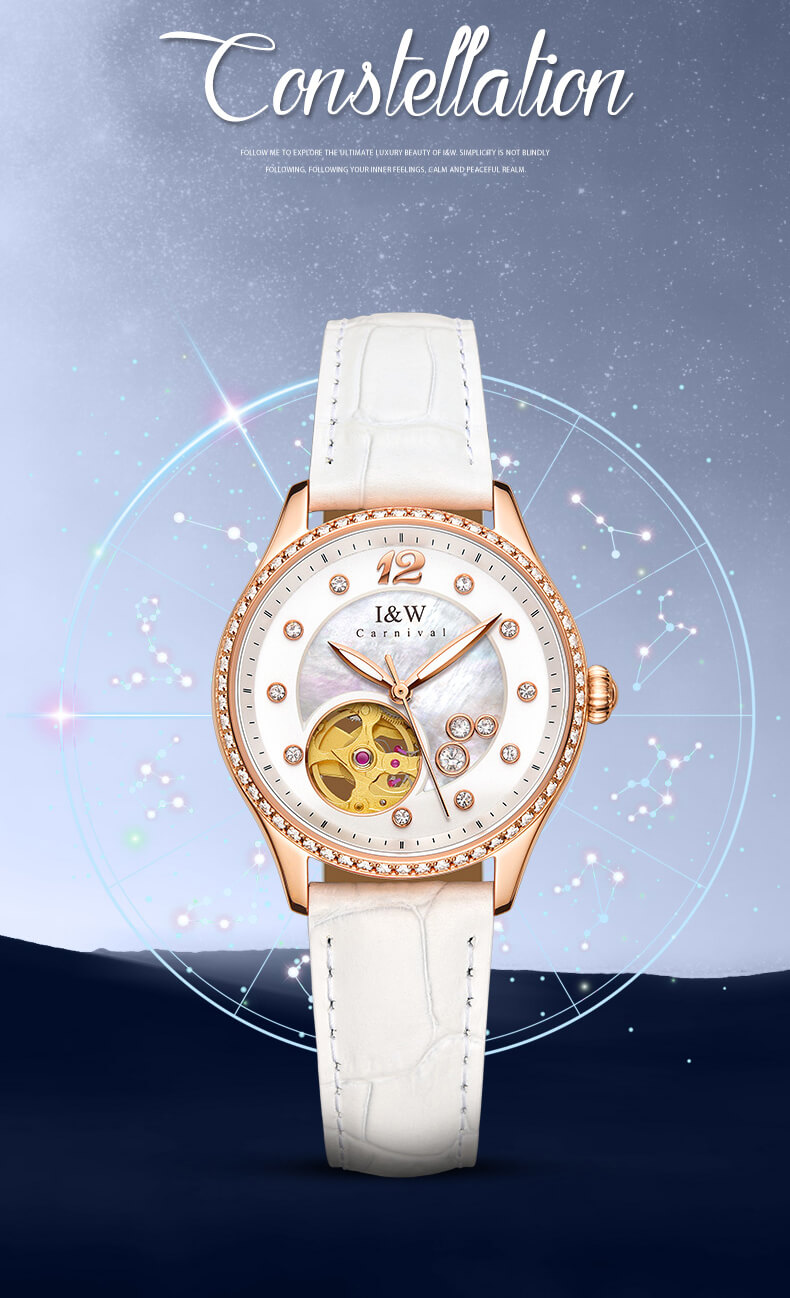 Thương hiệu I&W Carnival Quốc gia đăng ký thương hiệu Thụy Sỹ Mã sản phẩm 573L1 Giới tính Nữ Bảo hành Chính hãng 24 tháng Kiểu máy Japan Miyota Automatic Mov't (Máy cơ tự động
