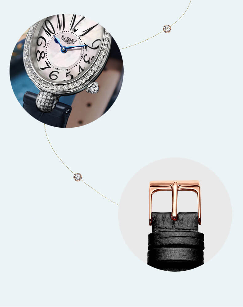 Đồng hồ nữ chính hãng Kassaw Thụy Sỹ Thiết kế hiện đại,sang trọng dành cho phái nữ Thời gian trữ cót lâu lên đến 40h Chống nước 5ATM, Kính sapphire Toàn bộ máy được làm