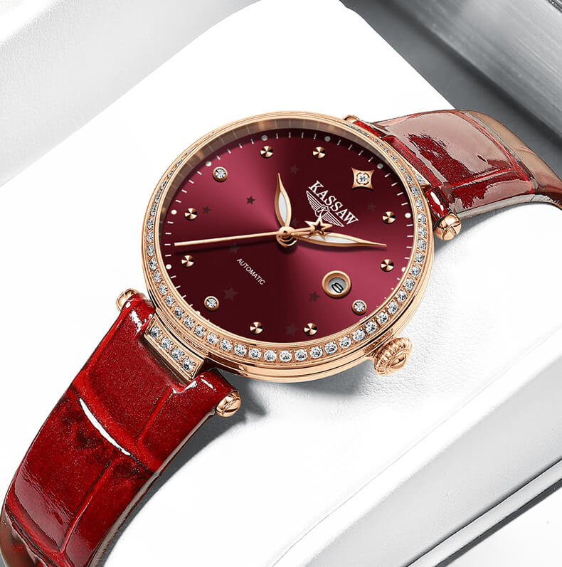 Đồng hồ nữ chính hãng kassaw Thụy Sỹ Thiết kế hiện đại,sang trọng dành cho phái nữ Thời gian trữ cót lâu lên đến 40h Chống nước 5ATM, Kính sapphire Toàn bộ máy được làm