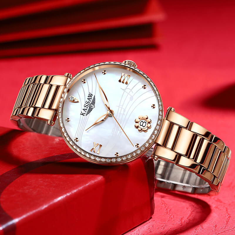 Đồng hồ nữ chính hãng kassaw Thụy Sỹ Thiết kế hiện đại,sang trọng dành cho phái nữ Thời gian trữ cót lâu lên đến 40h Chống nước 5ATM, Kính sapphire Toàn bộ máy được làm