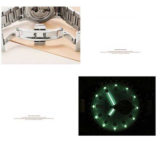 - Vật liệu vỏ / gờ: Sắc vàng kim - Dây đeo bằng da - Mặt kính khoáng - Chống nước - Giờ hiện hành thông thường Đồng hồ kim: 3 kim (giờ, phút, giây)