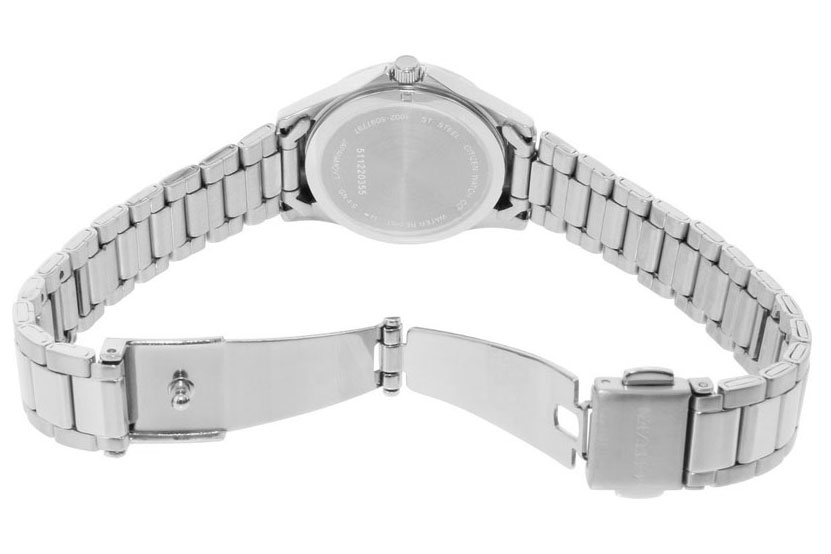 Các tính năng - Khả năng chống nước ở độ sâu 50 mét - Hiển thị ngày Đặc điểm kỹ thuật - - Vật liệu vỏ / vành bezel: Thép không gỉ - Chốt gập